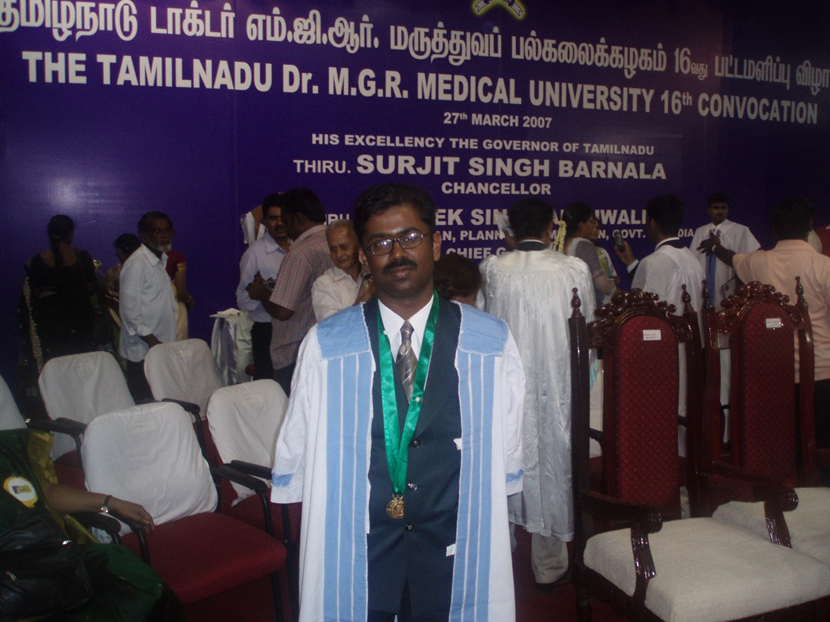MBBS, MS orthopedics(Madras medical College), Fellowship in adult reconstruction(New York), Fellowship in deformity( Harvard University)