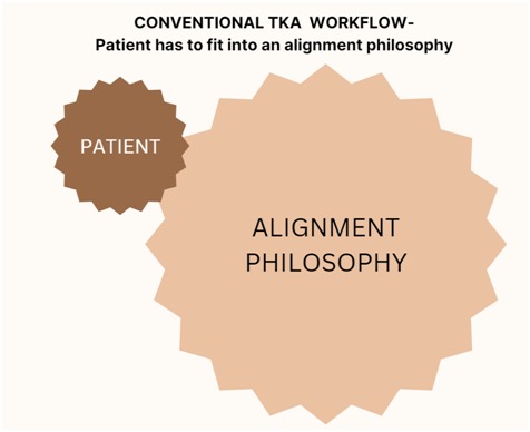 A knee replacement surgery is designed to provide pain free improvement in quality of life. The important determinant is alignment, ligament balance and good fixation of the implant. Since there is no one alignment that is superior to another the default standard has been “MECHANICAL NEUTRAL” approach where whatever the starting points- the aim is to get to a straight line. This approach potentially reduces the ultimate satisfaction rates